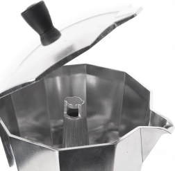 Πρακτική καφετιέρα moka χωρητικότητας 450 ml για παρασκευή παραδοσιακού ιταλικού espresso με πλούσιο άρωμα. Κατασκευασμένη από ποιοτικό αλουμίνιο με ανθεκτική στη θερμότητα λαβή, διαθέτει βαλβίδα ασφαλείας και είναι κατάλληλη για όλους τους τύπους εστιών, συμπεριλαμβανομένης της επαγωγής. Περιλαμβάνεται επίσης ανταλλακτικό σιλικονούχο παρέμβυσμα.