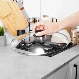 Αυτό το καθολικό γυάλινο καπάκι ταιριάζει άψογα σε κατσαρόλες, τηγάνια και κασαρόλες διαμέτρου 32 cm. Χάρη στο διάφανο, ανθεκτικό στη θερμότητα γυαλί έχετε συνεχώς οπτικό έλεγχο της διαδικασίας μαγειρέματος χωρίς να σηκώνετε το καπάκι, εξοικονομώντας ενέργεια και χρόνο. Το ανοξείδωτο χείλος εξασφαλίζει μεγάλη διάρκεια ζωής και το ψηλό περίβλημα συμβάλλει σε σταθερή και στεγανή εφαρμογή στα σκεύη.