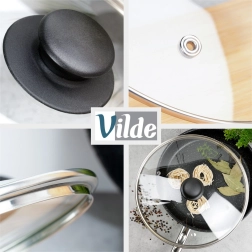 Ο ενσωματωμένος αεραγωγός εκτόνωσης ρυθμίζει τους υπερβολικούς υδρατμούς και το ελαφρώς κυρτό σχήμα βοηθά την κυκλοφορία του θερμού αέρα. Το εργονομικό μαύρο κουμπί από ανθεκτικό υλικό προσφέρει ευχάριστο κράτημα και διευκολύνει τον χειρισμό. Το καπάκι είναι κατάλληλο για πλυντήριο πιάτων και αντέχει θερμοκρασίες έως +200 °C.