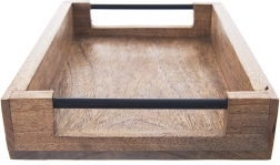 Κομψός δίσκος σερβιρίσματος από ξύλο μάνγκο που συνδυάζει φυσική όψη με βιομηχανικό στυλ loft. Χάρη στα ψηλά χείλη και τις στιβαρές μεταλλικές χειρολαβές σε μαύρο χρώμα, η μεταφορά φλιτζανιών, τσαγιερών, ποτηριών ή πιατακίων είναι εύκολη και ασφαλής. Το φυσικό νεράκι του ξύλου προσδίδει στο τραπέζι σας ξεχωριστό χαρακτήρα.