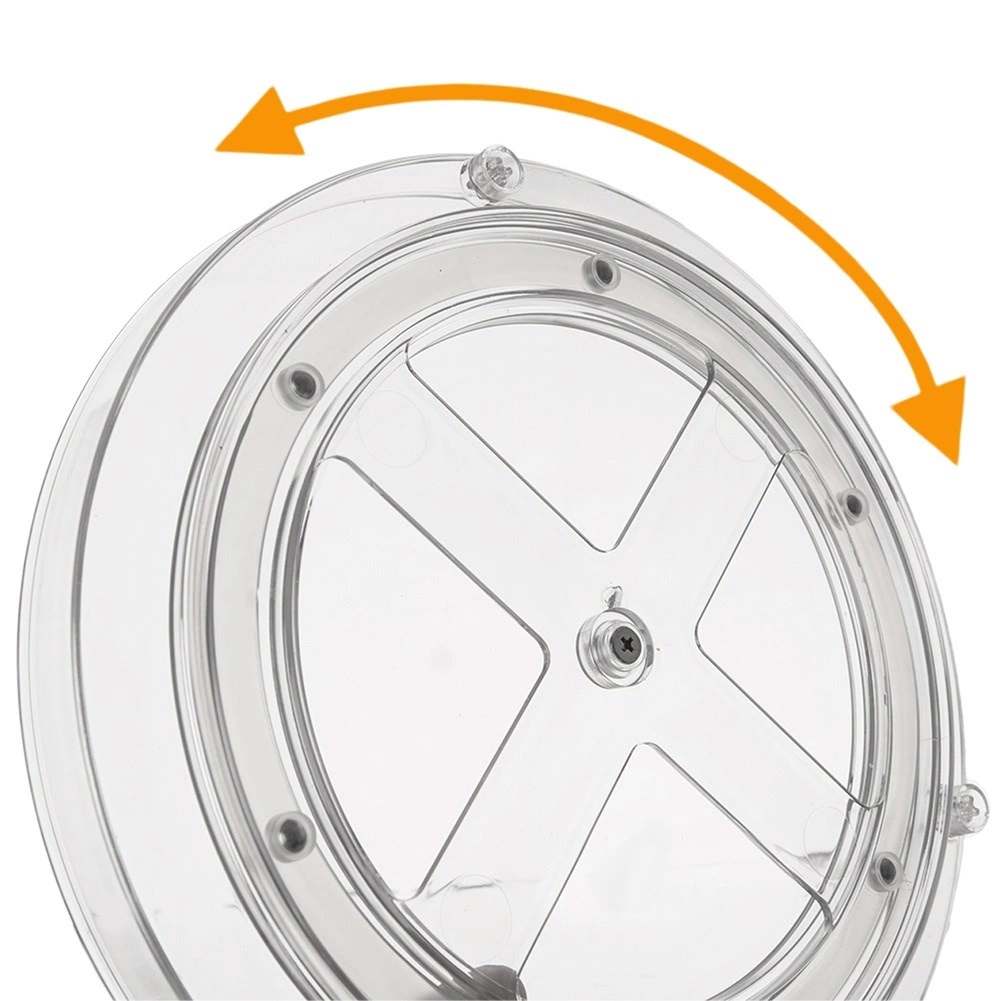 Ο περιστρεφόμενος οργανωτής είναι μια έξυπνη λύση για τάξη στην κουζίνα, το μπάνιο και το ντουλάπι. Η σταθερή κυκλική βάση περιστρέφεται κατά 360°, ώστε να φτάνετε άνετα σε όλα χωρίς αναδιάταξη. Ο διάμετρος 27 cm και το ύψος 4,5 cm προσφέρουν συμπαγή αλλά εκπληκτικά ευρύχωρη αποθήκευση.