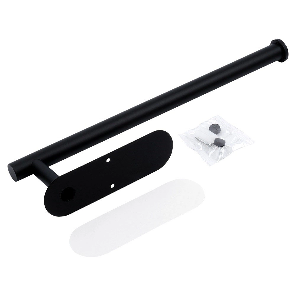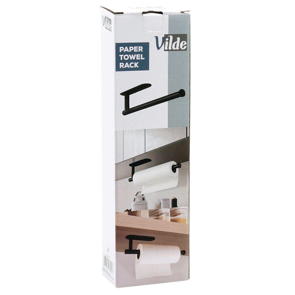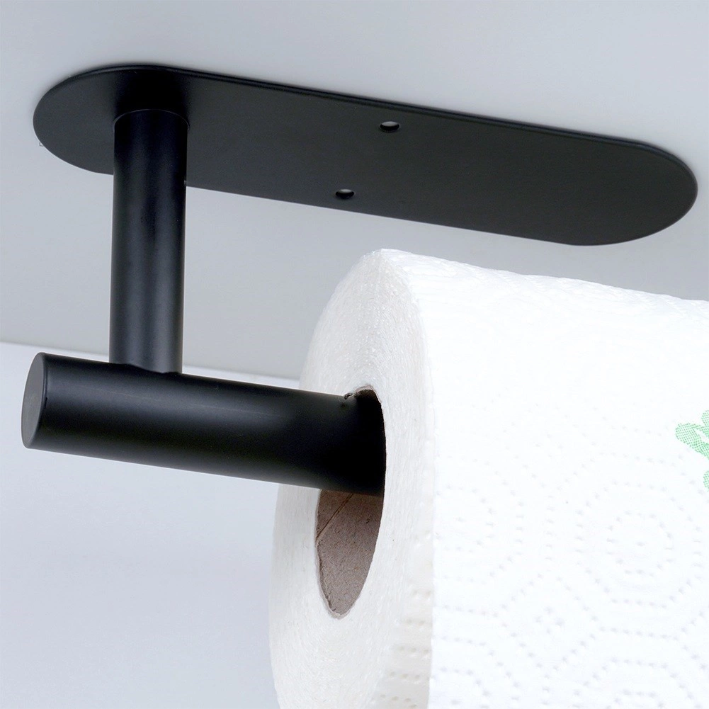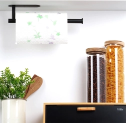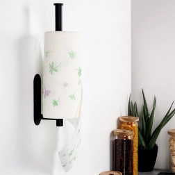 Πρακτική βάση για χάρτινες πετσέτες από ανθεκτικό ανοξείδωτο ατσάλι σε μαύρο χρώμα για κουζίνα, μπάνιο και γραφείο. Εξασφαλίζει γρήγορο σκίσιμο φύλλου, εξοικονόμηση χώρου και εύκολη πρόσβαση κατά το μαγείρεμα και τον καθαρισμό. Στη συσκευασία περιλαμβάνονται ταινία διπλής όψεως και βίδες για επιλογή μεταξύ χωρίς τρύπημα ή σταθερής τοποθέτησης.