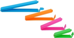 Τα κλιπ είναι κατασκευασμένα από ανθεκτικό πλαστικό, είναι ελαφριά αλλά στιβαρά και προορίζονται για επαναλαμβανόμενη χρήση. Χάρη στον μοχλικό μηχανισμό κλεισίματος ανοίγουν και κλείνουν εύκολα και συγκρατούν με ασφάλεια ακόμη και σε πιο χοντρές άκρες συσκευασιών. Οι συμπαγείς διαστάσεις επιτρέπουν εξοικονόμηση χώρου στο συρτάρι.