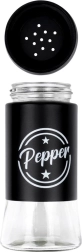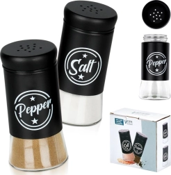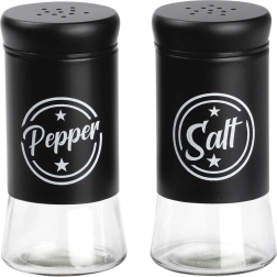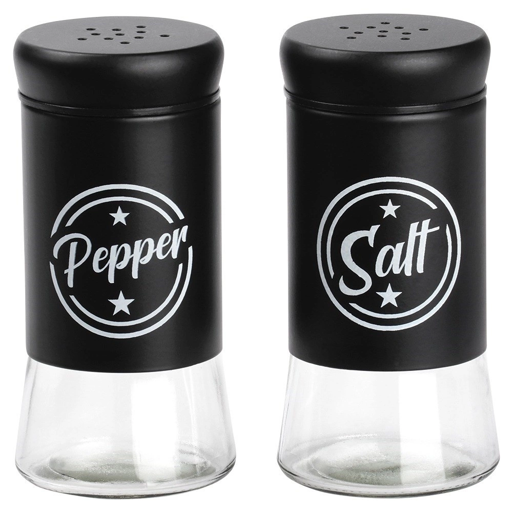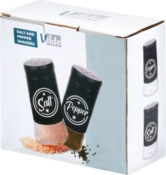 Το σετ περιλαμβάνει δύο δοχεία μπαχαρικών χωρητικότητας 140 ml με διάφανο γυάλινο πάτο και ματ μαύρο μεταλλικό επάνω μέρος. Τα πρακτικά καπάκια με οπές επιτρέπουν ομοιόμορφο πασπάλισμα και βοηθούν στη διατήρηση της φρεσκάδας και του αρώματος των μπαχαρικών για μεγαλύτερο διάστημα. Χάρη στις ευδιάκριτες επιγραφές Salt και Pepper αναγνωρίζετε πάντα γρήγορα το σωστό δοχείο.