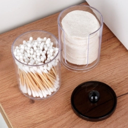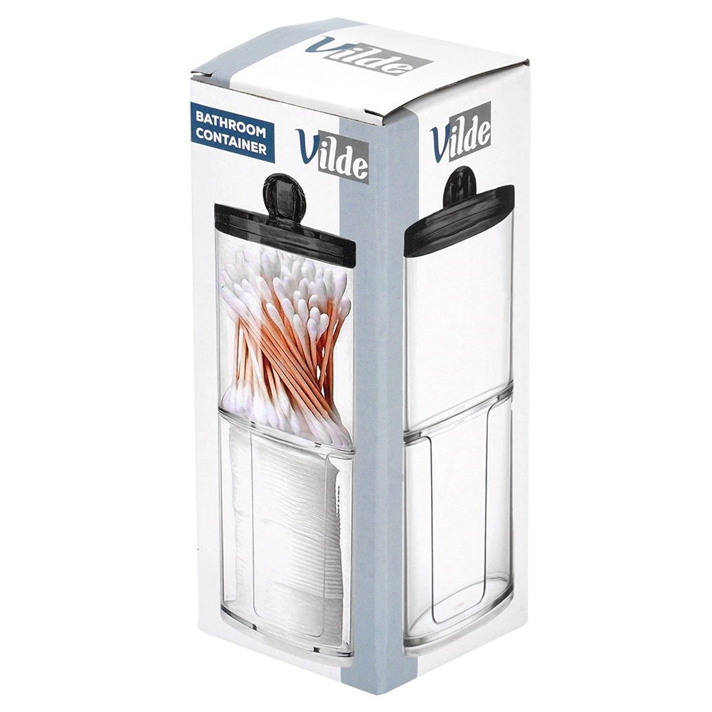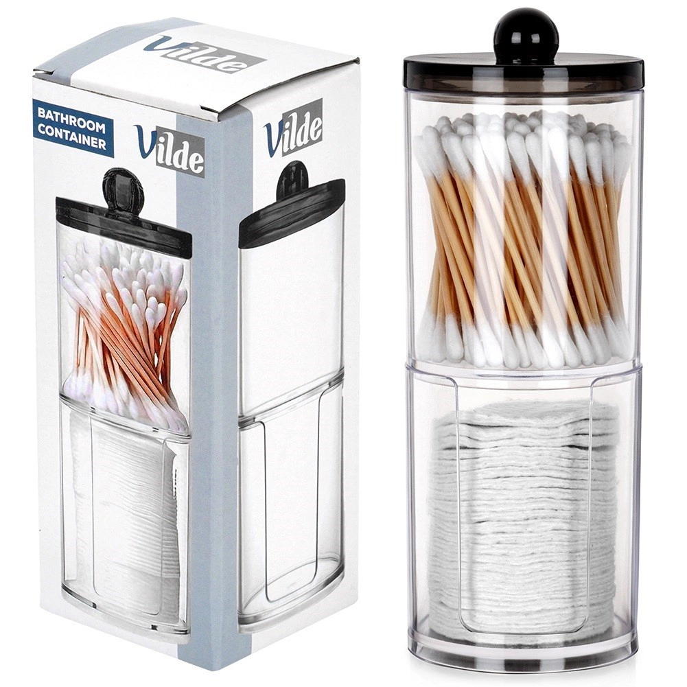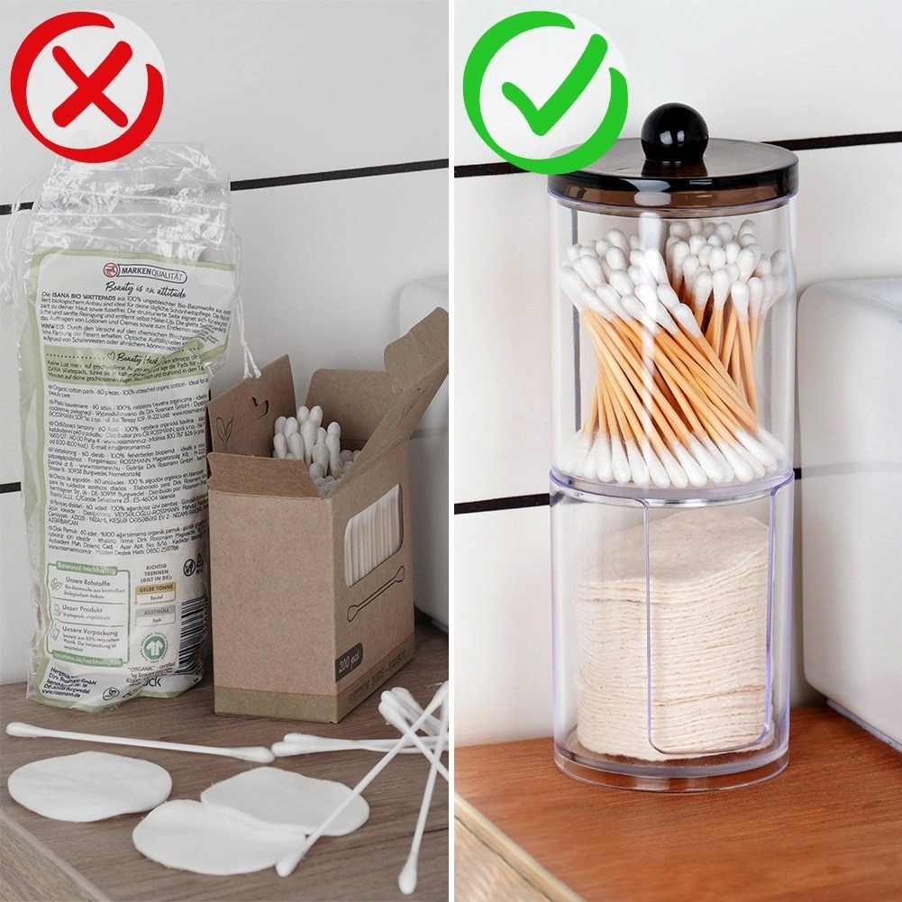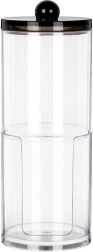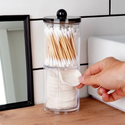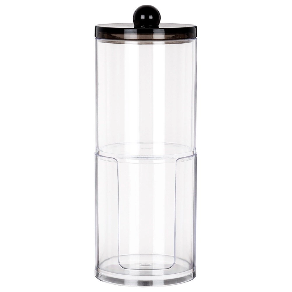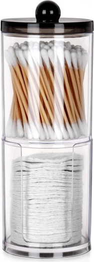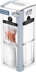 Αυτός ο κομψός διόροφος δοχείο-οργανωτής είναι ιδανικός για την καθημερινή ρουτίνα στο μπάνιο. Η διαφανής κατασκευή επιτρέπει άμεσο έλεγχο της στάθμης του περιεχομένου, ενώ η στοιβαζόμενη λύση εξοικονομεί χώρο στο ράφι και στον νιπτήρα. Το επάνω δοχείο είναι κατάλληλο για μπατονέτες, το κάτω για στρογγυλούς δίσκους ντεμακιγιάζ.