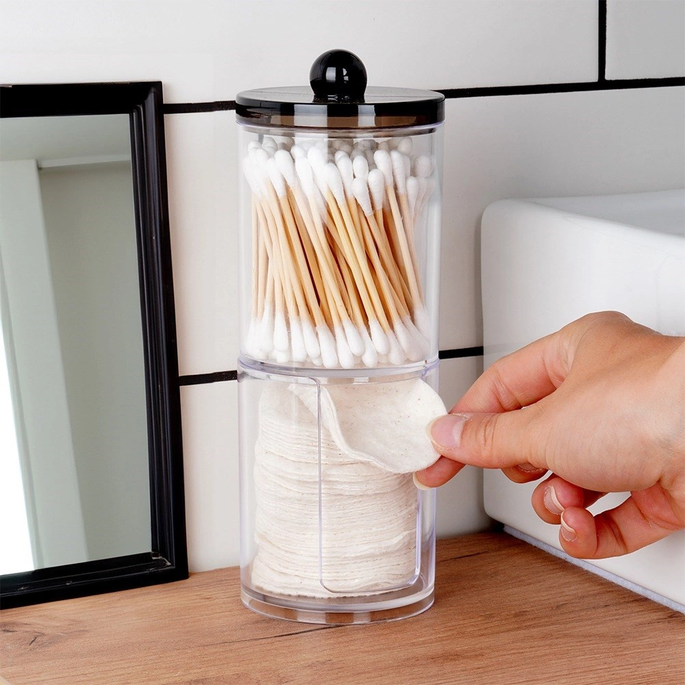 Κρατήστε το μπάνιο σας τακτοποιημένο με αυτόν τον διώροφο οργανωτή από διαφανές ακρυλικό. Προσφέρει σύστημα αποθήκευσης 2 σε 1 για μπατονέτες και δίσκους ντεμακιγιάζ, έχει συμπαγείς διαστάσεις, καπάκι κατά της σκόνης και το κάτω μέρος λειτουργεί ως πρακτικός διανεμητής δίσκων για γρήγορη και υγιεινή πρόσβαση.