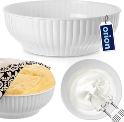 Αυτό το πολυχρηστικό λευκό μπολ είναι ένας αξιόπιστος βοηθός για το καθημερινό μαγείρεμα και ψήσιμο. Με χωρητικότητα 2,5 l διαχειρίζεται εύκολα την ανάμειξη ζύμης, το χτύπημα κρεμών και την προετοιμασία σαλατών. Η κάθετη ραβδωτή υφή εξασφαλίζει άνετο και ασφαλές κράτημα, ενώ ο διαχρονικός σχεδιασμός ταιριάζει σε κάθε τραπέζι.