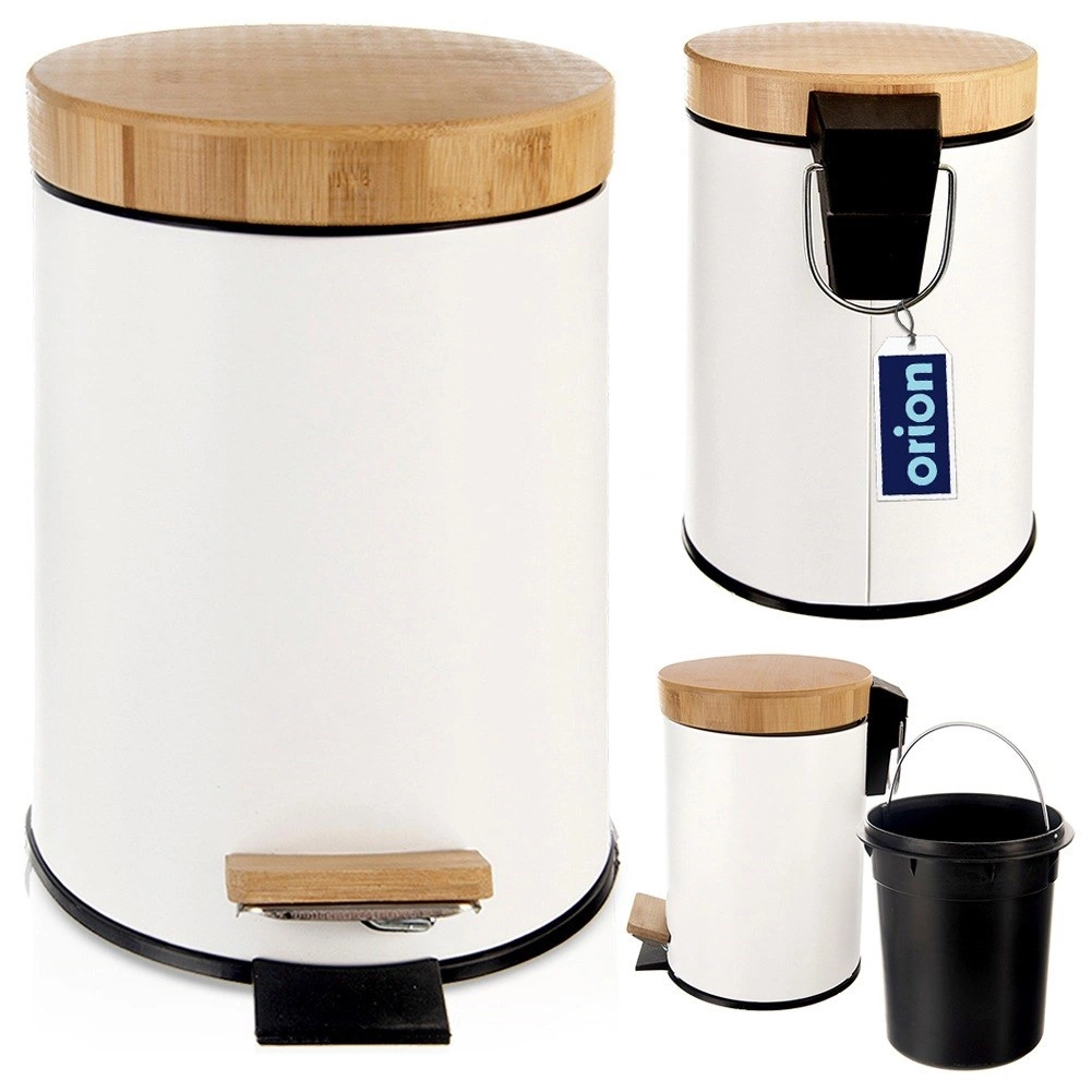 Μικρό δοχείο απορριμμάτων χωρητικότητας 3 l σε κομψό λευκό φινίρισμα με καπάκι και πεντάλ από μπαμπού, ιδανικό για μπάνιο, γραφείο ή υπνοδωμάτιο. Αθόρυβο και υγιεινό άνοιγμα με πεντάλ, αφαιρούμενος εσωτερικός κάδος για εύκολο άδειασμα και μοντέρνος μινιμαλιστικός σχεδιασμός για κάθε χώρο.