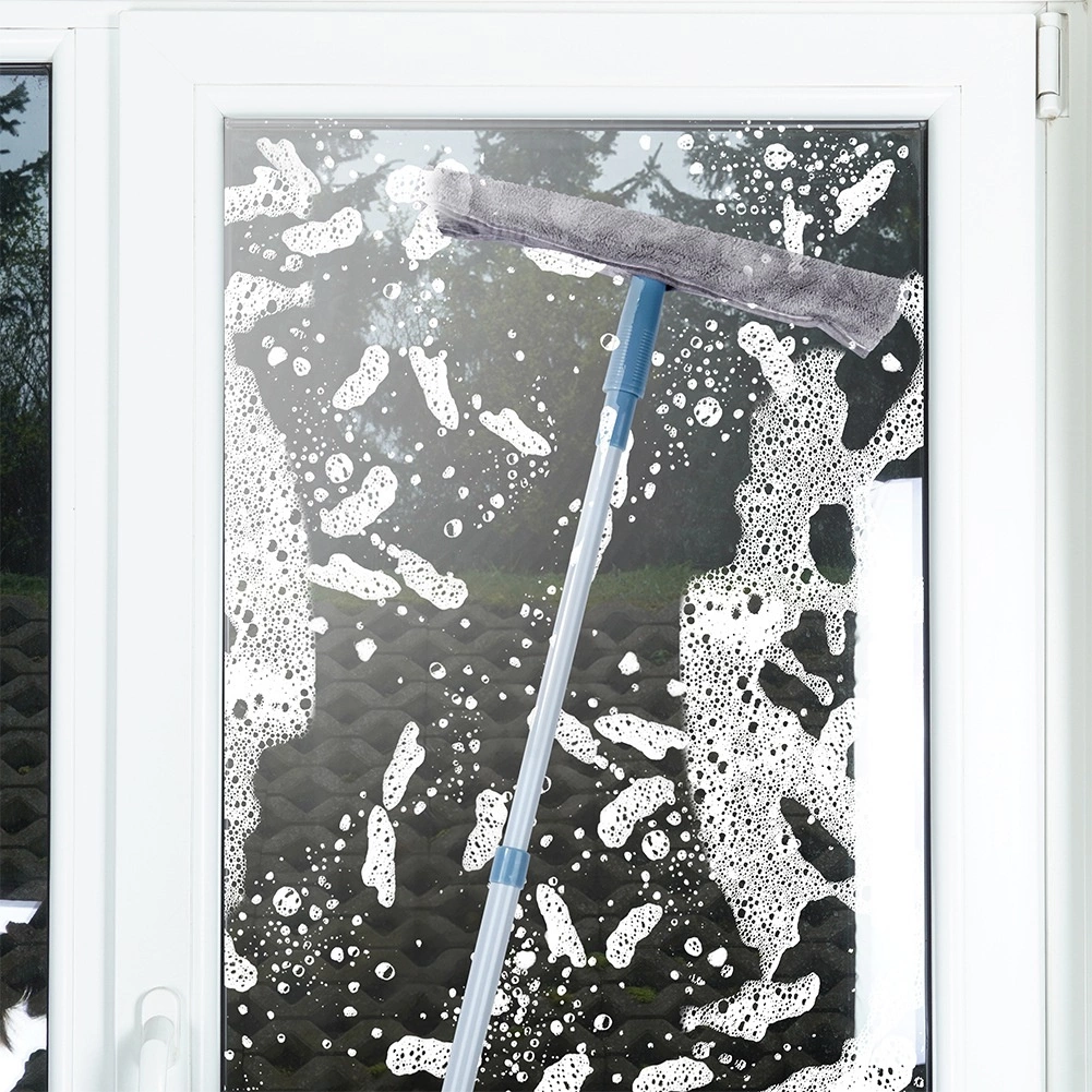 Αυτό το σετ 4 τεμαχίων για πλύσιμο παραθύρων είναι ιδανικό για σπίτια, γραφεία και χειμερινούς κήπους. Η τηλεσκοπική ράβδος με εύρος 50–95 cm επιτρέπει ασφαλή καθαρισμό χωρίς σκάλα, οι μικροΐνες απορροφούν αποτελεσματικά τις ακαθαρσίες και το νερό απομακρύνεται γρήγορα με τη λαστιχένια ξύστρα για κρυστάλλινα καθαρά τζάμια χωρίς γραμμές.