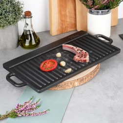 Λεία επιφάνεια για τηγάνισμα και κρέπες, ραβδωτή πλευρά για έντονες γραμμές ψησίματος και απομάκρυνση της περίσσειας λίπους.