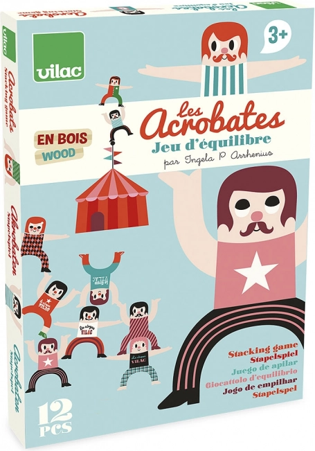 Ένα διασκεδαστικό σετ δώδεκα ξύλινων ακροβατών από τη VILAC φέρνει ένα έξυπνο παιχνίδι ισορροπίας για όλη την οικογένεια. Παιδιά και ενήλικες θα στοιβάζουν με ενθουσιασμό τις φιγούρες και θα δοκιμάζουν διαφορετικούς σχηματισμούς. Το παιχνίδι αναπτύσσει την υπομονή, τη λογική σκέψη, τη λεπτή κινητικότητα και τη δημιουργικότητα. Η πρωτότυπη εμφάνιση εξασφαλίζεται από τις εικονογραφήσεις της Ingela P. Arrhenius.