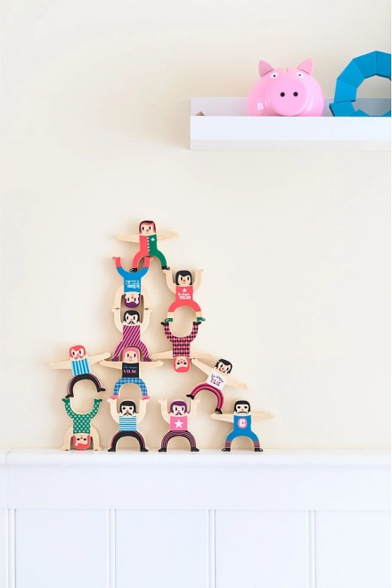 Χτίστε τον δικό σας πύργο ακροβατών και δοκιμάστε την επιδεξιότητα και τη φαντασία σας. Οι ξύλινες φιγούρες σε ζωηρά χρώματα μπορούν να στοιβαχτούν σε πολλές σταθερές ή τολμηρές στάσεις, κάνοντας αυτό το παιχνίδι ιδανική επιλογή για ομαδικό παιχνίδι και εκμάθηση ισορροπίας.
