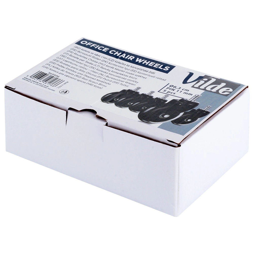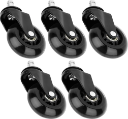 Σετ πέντε ανταλλακτικών ροδών για καρέκλα γραφείου, διαμέτρου 63 mm με άξονα 11 mm. Προσφέρουν αθόρυβη και ομαλή κίνηση, προστασία δαπέδου από γρατζουνιές και εύκολη τοποθέτηση χωρίς εργαλεία. Η καθολική διάσταση είναι συμβατή με τις περισσότερες καρέκλες (δεν ταιριάζει με IKEA).