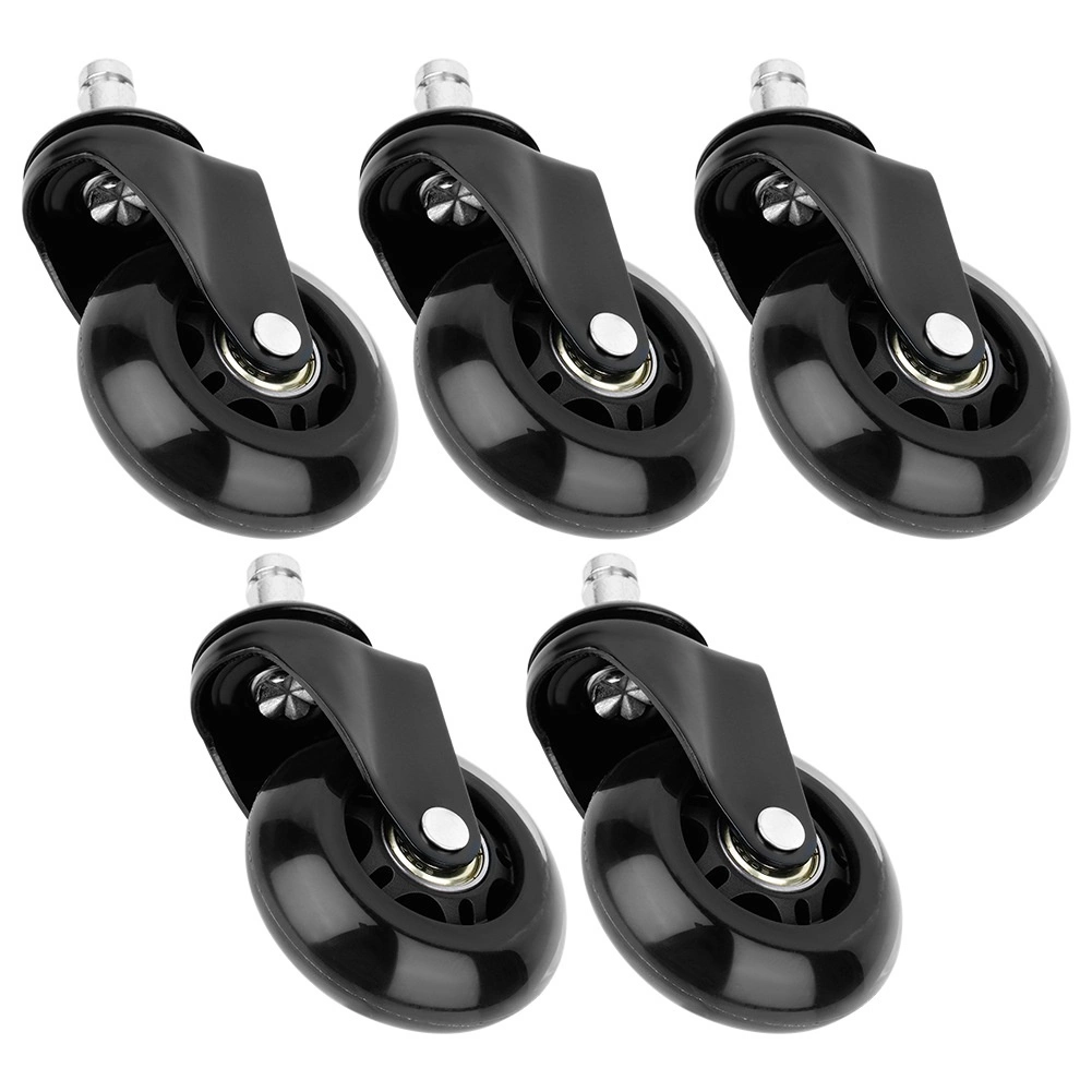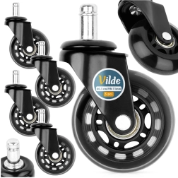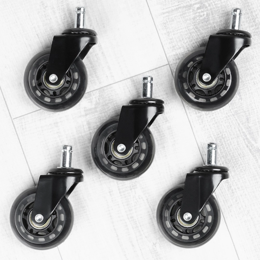 Αναβαθμίστε την καρέκλα γραφείου σας με ένα σετ 5 λαστιχένιων ροδών, που εξασφαλίζουν αθόρυβη και ομαλή κύλιση σε όλα τα σκληρά δάπεδα. Χάρη στο ανθεκτικό υλικό, οι ρόδες είναι ανθεκτικές στη φθορά και φιλικές στις επιφάνειες, ώστε να μη φοβάστε για γρατζουνιές στο δάπεδο στο γραφείο ή στο σπίτι.