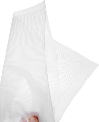 Πρακτικό σετ σακουλών κενού διαστάσεων 29,5 × 19,5 εκ. για μεγαλύτερη φρεσκάδα των τροφίμων. Οι σακούλες είναι επαναχρησιμοποιούμενες, ανθεκτικές σε θερμοκρασίες από -20 °C έως +110 °C και κατάλληλες για κατάψυξη και για sous‑vide. Η διαφανής κατασκευή με ειδικό ανάγλυφο για αποτελεσματική απομάκρυνση αέρα εξασφαλίζει άψογη σφράγιση και προστασία από υγρασία, βακτήρια και απώλεια γεύσης.