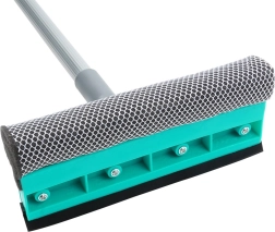 Το σφουγγάρι με δίχτυ αποδεσμεύει τη βρωμιά και η λαστιχένια λεπίδα απομακρύνει τέλεια το νερό χωρίς γραμμές – όλα σε μία συμπαγή κεφαλή.