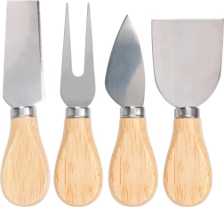 Πλήρες σετ με δύο μαχαίρια, σπάτουλα και πιρουνάκι για κοπή, τεμαχισμό και σερβίρισμα διαφόρων ειδών τυριών.