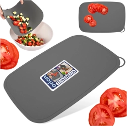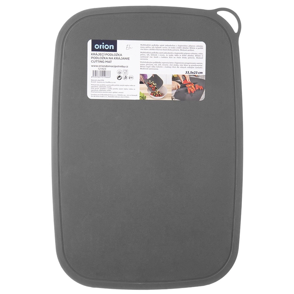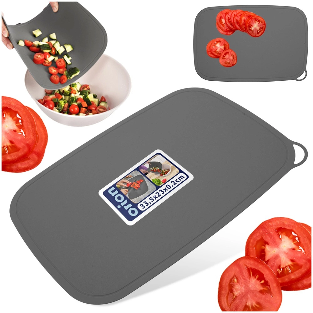 Πρακτική ελαστική επιφάνεια κοπής από ποιοτικό πλαστικό σε γκρι χρώμα, διαστάσεων 33,5 × 23 × 0,1 cm. Χάρη στη εύκαμπτη κατασκευή μεταφέρετε εύκολα τα κομμένα υλικά κατευθείαν σε μπολ ή κατσαρόλα· η επιφάνεια είναι αθόρυβη, ελαφριά και φιλική στις λεπίδες των μαχαιριών. Πλένεται στο πλυντήριο πιάτων και είναι ανθεκτική έως +95 °C. ORION ποιότητα για κάθε κουζίνα.