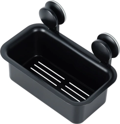 Πρακτικό ράφι ντους με βεντούζες για γρήγορη τοποθέτηση χωρίς τρύπημα. Προσφέρει σταθερή στήριξη σε λείες επιφάνειες, ανθεκτική πλαστική κατασκευή σε μαύρο χρώμα και αποτελεσματική αποστράγγιση νερού χάρη στις οπές απορροής. Ιδανικό για οργάνωση καλλυντικών στο ντους, δίπλα στη μπανιέρα ή τον νιπτήρα.