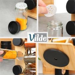 Η βάση από μπαμπού είναι σταθερή και κομψή. Τα διάφανα γυάλινα δοχεία με μαύρα καπάκια είναι ανθεκτικά και χωρίς καπάκια είναι κατάλληλα για πλυντήριο πιάτων.
