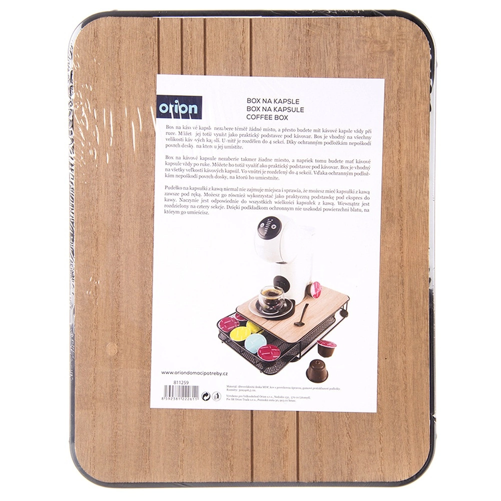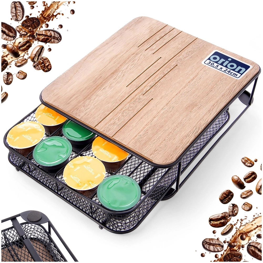 Κρατήστε τάξη στις κάψουλες και εξοικονομήστε χώρο στον πάγκο της κουζίνας. Ο οργανωτής συνδυάζει ανθεκτικό ματ μαύρο μέταλλο με διακοσμητική ξύλινη επιφάνεια, ταιριάζοντας άψογα σε μοντέρνο loft ή κλασικό εσωτερικό. Το συρτάρι με ευδιάκριτη διαρρύθμιση προσφέρει γρήγορη επιλογή αγαπημένου καφέ και άνετη πρόσβαση.