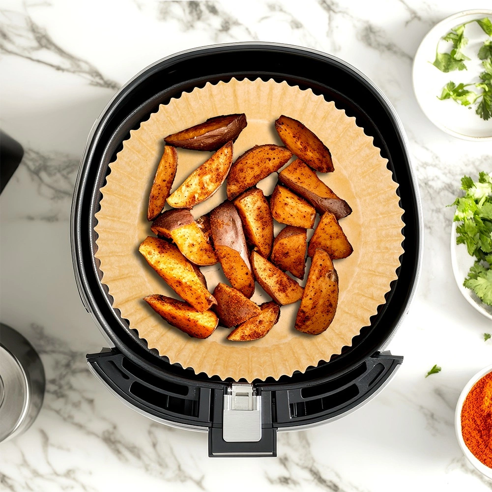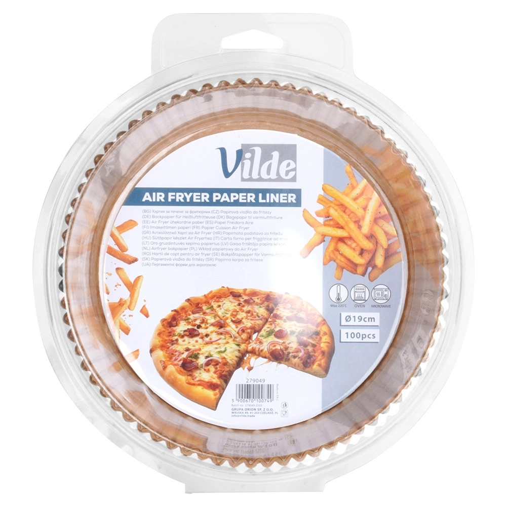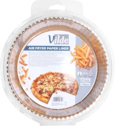 Οι πρακτικές χάρτινες φόρμες για φριτέζα αέρος (VILDE) εξοικονομούν χρόνο στο καθάρισμα και προστατεύουν το καλάθι από ρύπους. Το στρογγυλό σχήμα με ψηλά, πτυχωτά τοιχώματα αποτρέπει τη διαρροή λιπών και ψίχουλων και διευκολύνει το σερβίρισμα. Το υλικό είναι ασφαλές για επαφή με τρόφιμα και δεν αλλοιώνει τη γεύση των φαγητών.