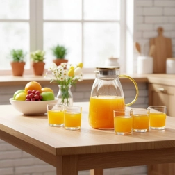 Η χωρητικότητα 2,2 l είναι ιδανική για οικογενειακά γεύματα, κήπο και την καθημερινή ενυδάτωση. Η κανάτα είναι στενή, ώστε να εφαρμόζει άνετα στις πόρτες του ψυγείου, και μετά τη χρήση καθαρίζεται εύκολα στο πλυντήριο πιάτων. Ταιριάζει άψογα για νερό, σπιτικές λεμονάδες, χυμούς, κομπόστες ή iced tea.
