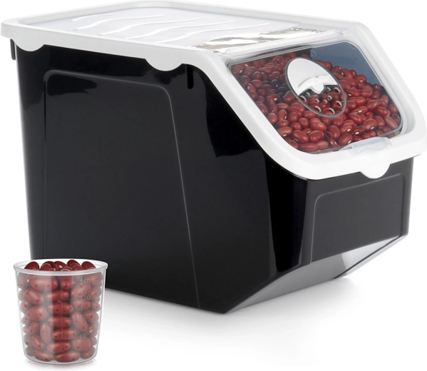 Ιδανικό για πατάτες, κρεμμύδια, σκόρδο, αλλά και για ζυμαρικά, όσπρια, τροφή για κατοικίδια ή μίγματα σε σκόνη. Το ποιοτικό πλαστικό χωρίς BPA είναι ασφαλές για τρόφιμα, κατάλληλο για κατάψυξη και πλυντήριο πιάτων. Ο πρακτικός δοσομετρητής με διαβάθμιση 40–160 ml διευκολύνει την ακριβή δοσομέτρηση.