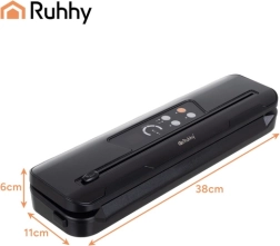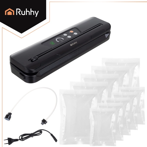 Η συσκευή σφράγισης κενού RUHHY διευκολύνει τη συσκευασία τροφίμων στο σπίτι, μειώνει τη σπατάλη και παρατείνει τη φρεσκάδα κρεάτων, τυριών, λαχανικών και μαριναρισμένων γευμάτων. Η ισχυρή αντλία κενού 80 kPa με ισχύ 110 W και ροή 9 l/min δημιουργεί επαγγελματικές, αεροστεγείς ραφές μέσα σε λίγα δευτερόλεπτα. Καθαροί δείκτες LED και απλός χειρισμός εξασφαλίζουν αξιόπιστο αποτέλεσμα κάθε φορά.