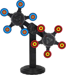 Εξασκηθείτε στη στόχευση και στις γρήγορες αντιδράσεις με τον ηλεκτρονικό στόχο που περιστρέφεται και αλλάζει ρυθμό. Χάρη στην ψηφιακή καταμέτρηση των χτυπημάτων θα έχετε άμεση ανατροφοδότηση και κάθε παίκτης θα βλέπει το σκορ του. Πολύχρωμοι στόχοι με κέντρο προσελκύουν την προσοχή και ενθαρρύνουν για περισσότερες προσπάθειες.