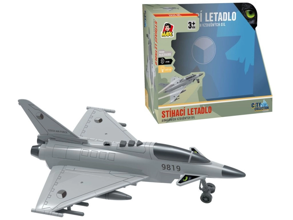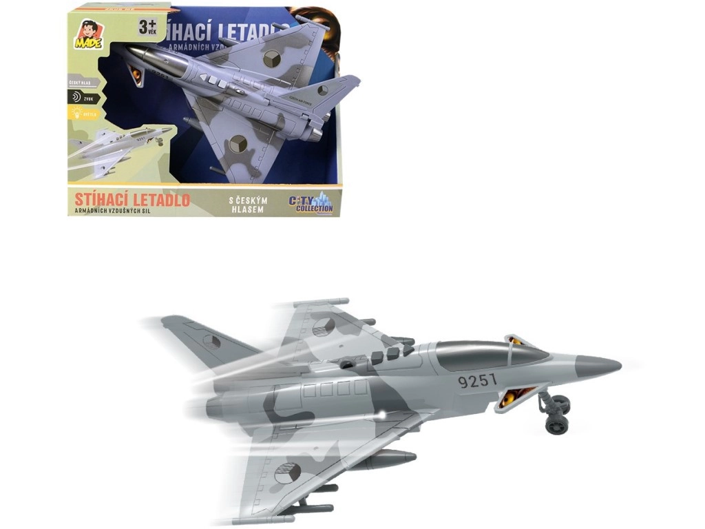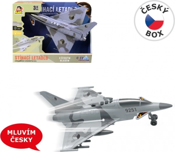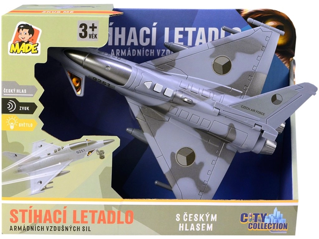 Απολαύστε αποστολές δράσης με ένα λεπτομερές μαχητικό αεροπλάνο διακοσμημένο με τα εθνόσημα της Τσεχικής Δημοκρατίας. Το μοντέλο προσφέρει αυθεντικούς διαλόγους στα τσέχικα μεταξύ πύργου ελέγχου και πιλότου, φωτεινά εφέ και ήχο ιπτάμενου μαχητικού, που ενισχύουν την ατμόσφαιρα του παιχνιδιού.