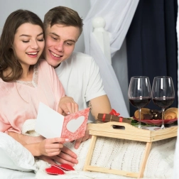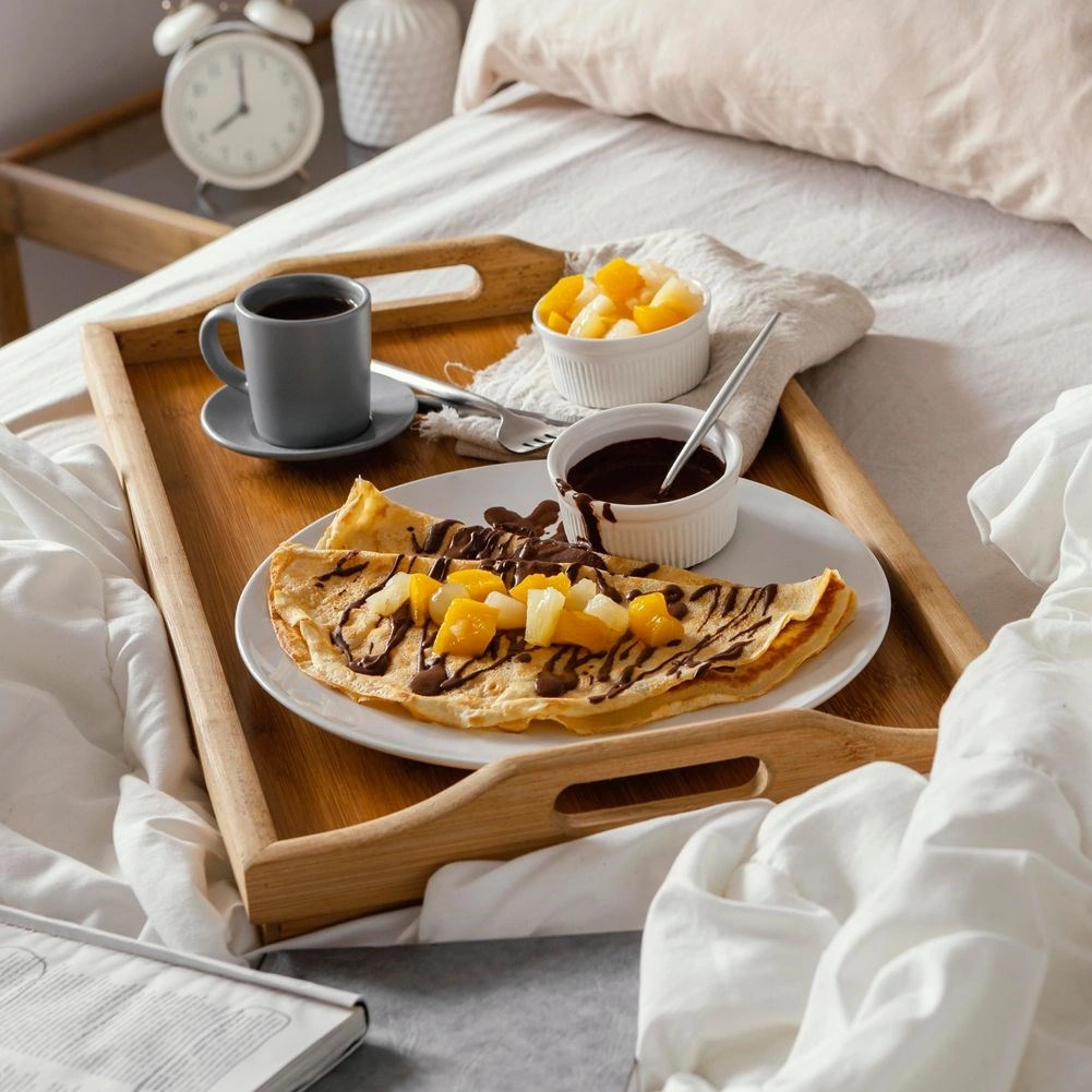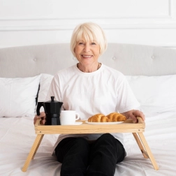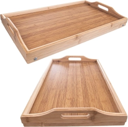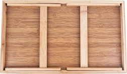 Πρακτικός δίσκος πρωινού από μπαμπού για άνετο σερβίρισμα στο κρεβάτι ή στον καναπέ. Είναι ελαφρύς, ανθεκτικός στην υγρασία, διαθέτει πτυσσόμενα πόδια και χρησιμεύει επίσης ως βάση για tablet ή φορητό υπολογιστή.