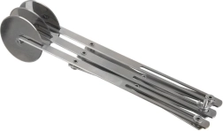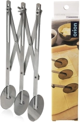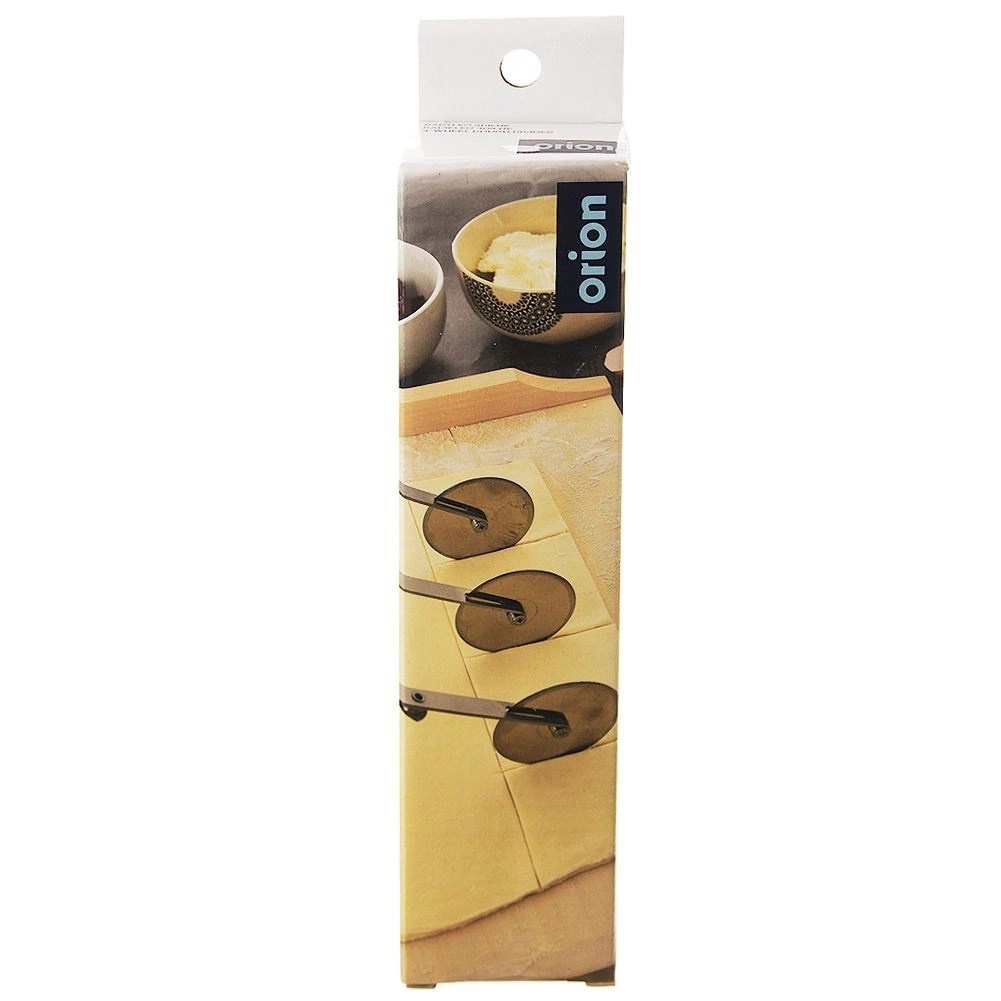 Ο τριπλός ψαλιδωτός κόφτης από ανοξείδωτο ατσάλι είναι αξιόπιστος βοηθός για οικιακό και επαγγελματικό ψήσιμο. Τρεις μονόπλευροι λειοί δίσκοι διαμέτρου 5,5 cm εξασφαλίζουν καθαρές κοπές χωρίς σκισίματα και χωρίς να κολλά η ζύμη. Η μακριά λαβή προσφέρει σταθερό κράτημα και άνετο χειρισμό.