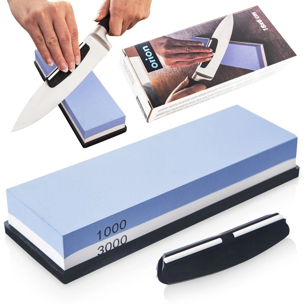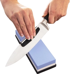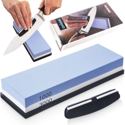 Η μπλε πλευρά 1000 αποκαθιστά γρήγορα την κόψη, η λευκή 3000 τη γυαλίζει σε λεία επιφάνεια. Ιδανικός συνδυασμός για κοφτερά και μακράς διάρκειας αποτελέσματα.