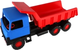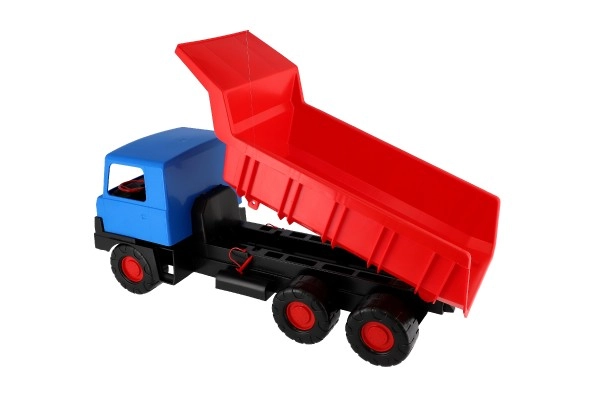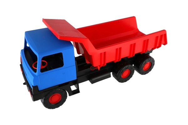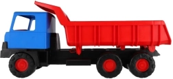 Ένα ανθεκτικό πλαστικό φορτηγό με μπλε καμπίνα και κόκκινη ανατρεπόμενη καρότσα που θα ενθουσιάσει τους μικρούς κατασκευαστές στο σπίτι και στην παιδική χαρά. Χάρη στο μήκος 75 cm, τους ανθεκτικούς τροχούς και τη λειτουργική ανατροπή, μεταφέρει άμμο, χαλικάκια και παιχνίδια. Ελαφριά και ασφαλής κατασκευή που ενθαρρύνει δημιουργικό και υπαίθριο παιχνίδι.