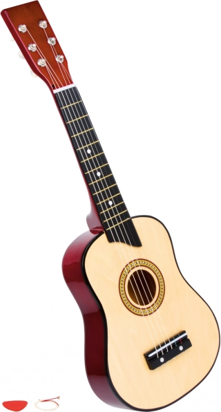 Αυτή η φυσική ξύλινη κιθάρα είναι εξαιρετική επιλογή για μικρούς μουσικούς. Χάρη στις νάιλον χορδές είναι ευχάριστη στην αφή και συγχωρεί τα πρώτα παιδικά λάθη. Παίρνετε ό,τι χρειάζεστε για τους πρώτους ήχους – πένα και ανταλλακτική χορδή.