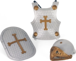 Το σετ περιλαμβάνει ό,τι χρειάζονται οι μικροί ιππότες για να ζήσουν τα ηρωικά τους όνειρα – σπαθί με θήκη, ασπίδα, κράνος και γιλέκο.