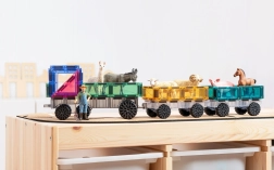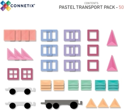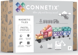 Το παστέλ CONNETIX Transport Pack προσφέρει 50 ανθεκτικά, διάφανα κομμάτια με ισχυρούς μαγνήτες νεοδυμίου και τρία σασί με ρόδες. Τα παιδιά κατασκευάζουν εύκολα αυτοκίνητα, τρένα ή φουτουριστικές μηχανές, ενώ έρχονται φυσικά σε επαφή με τη γεωμετρία 2D/3D, τη συμμετρία και τις αρχές της φυσικής (ισορροπία, σταθερότητα, αιτία–αποτέλεσμα). Τα κομμάτια συνδέονται με σιγουριά από όλες τις πλευρές και το «κλικ» στη σύνδεση παρακινεί σε περαιτέρω δοκιμές.