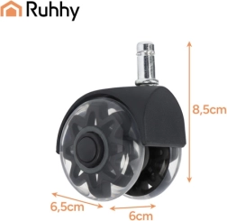 Τα ροδάκια RUHHY προσφέρουν άνεση και ασφάλεια για το δάπεδο και την καρέκλα σας. Χάρη στην μαλακή επιφάνεια PU κυλούν ομαλά σε laminate, παρκέ, πλακάκια και χαλί χωρίς να αφήνουν γρατζουνιές. Το ατσάλινο ρουλεμάν και η ενισχυμένη κατασκευή εξασφαλίζουν μακρά διάρκεια ζωής και αξιοπιστία στην καθημερινή χρήση.