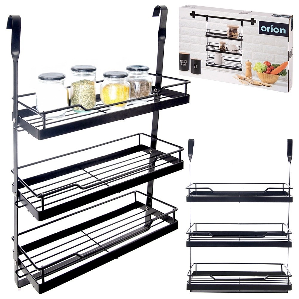 Τρία καλαθάκια με υπερυψωμένα χείλη χωρούν μπαχαρικά, δοχεία και μικροαντικείμενα – όλα τακτοποιημένα και άμεσα προσβάσιμα.