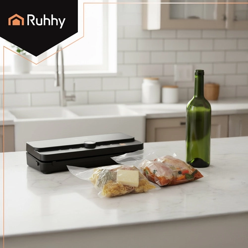 Η πρακτική και αξιόπιστη συσκευή σφράγισης κενού RUHHY είναι ιδανική για οικιακή αποθήκευση τροφίμων και για προετοιμασία sous‑vide. Χάρη στον ισχυρό υποπίεση έως -80 kPa και την αποδοτική αντλία 9 l/min απομακρύνει τον αέρα σε λίγα δευτερόλεπτα και δημιουργεί σταθερή, ομοιόμορφη συγκόλληση. Ο ενσωματωμένος αποθηκευτικός χώρος για ρολό και ο συρόμενος κόπτης σάς επιτρέπουν να φτιάχνετε σακούλες οποιουδήποτε μήκους χωρίς ψαλίδι, εξοικονομώντας χρόνο και χώρο.
