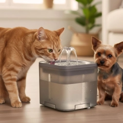 Το αυτόματο σιντριβάνι για σκύλους και γάτες υποστηρίζει τακτική ενυδάτωση και καλύτερη κατανάλωση νερού. Χάρη στην κυκλοφορία νερού και τη ενεργή φιλτράριση, το νερό παραμένει πάντα φρέσκο και εύγευστο. Η αθόρυβη λειτουργία γύρω στα 40 dB δεν ενοχλεί το σπίτι ούτε τα ευαίσθητα ζώα.