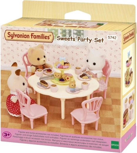 Δημιουργήστε παραμυθένια ατμόσφαιρα τσαγιού με το σετ Sylvanian Families τραπέζι, καρέκλες και γλυκά. Στη συσκευασία θα βρείτε μεγάλο τραπέζι φαγητού, τέσσερις καρέκλες και πλήρες σερβίρισμα για τέσσερις φιγούρες – από πιάτα και πιρούνια μέχρι φλιτζάνια για καφέ και καπουτσίνο. Η πλούσια ποικιλία γλυκισμάτων, όπως μάφιν, τούρτες, τάρτες φρούτων, σοκολάτες, καραμέλες και μπισκότα, δίνει σε κάθε κάθισμα ρεαλιστική και παιχνιδιάρικη νότα.