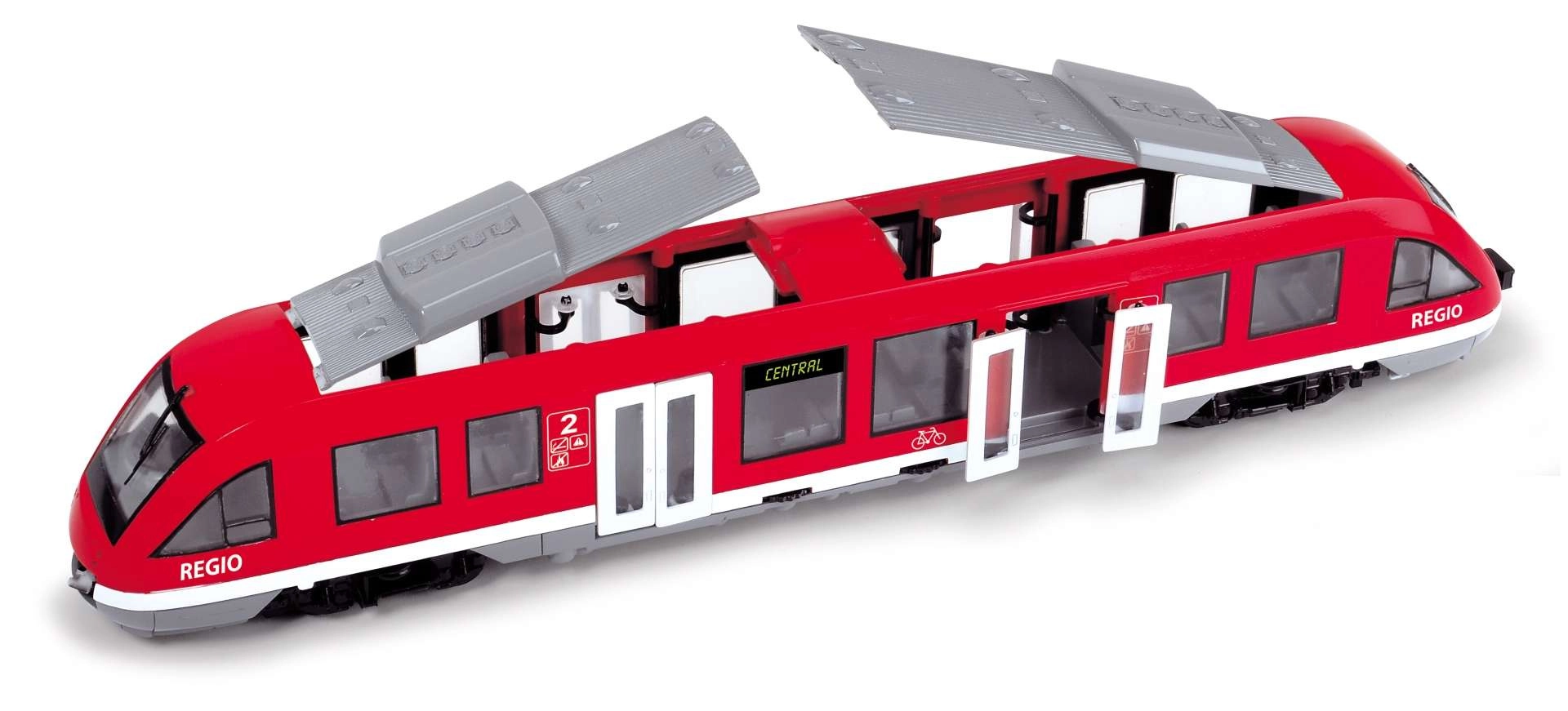 Ρεαλιστικό κόκκινο αστικό τρένο REGIO από τη μάρκα DICKIE TOYS που ενθουσιάζει τους μικρούς λάτρεις των σιδηροδρόμων. Προσφέρει ανοιγόμενες πόρτες που λειτουργούν με ροδέλα, ελεύθερα περιστρεφόμενους τροχούς για ομαλή κίνηση σε επίπεδες επιφάνειες και λεπτομερή εσωτερικό χώρο με καθίσματα και καμπίνα μηχανοδηγού. Ιδανικό παιχνίδι για παιδιά από 3 ετών με έμφαση στη ρεαλιστική εμφάνιση και την ανθεκτικότητα.