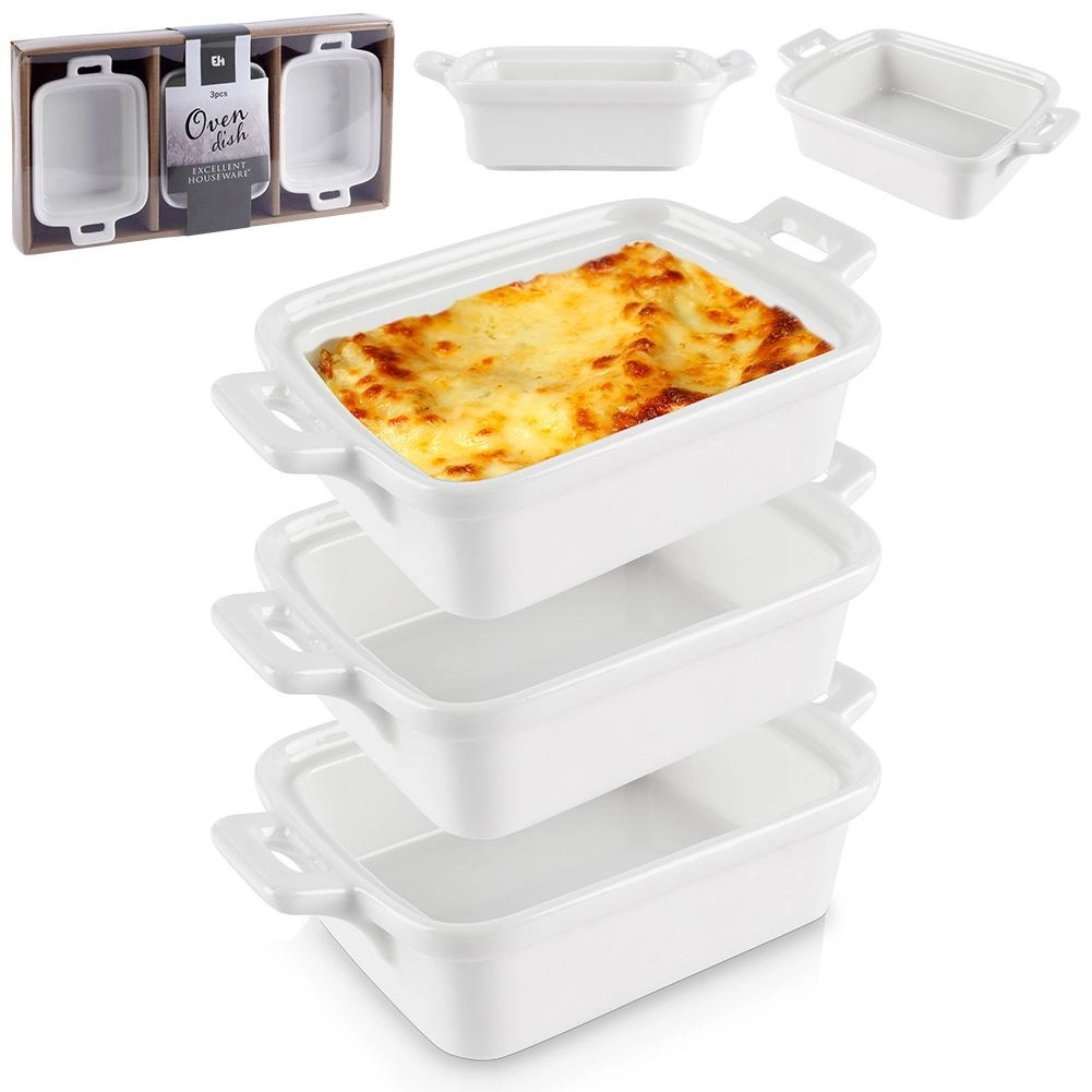 Αυτά τα συμπαγή πυρέξ σε ορθογώνιο σχήμα με ενσωματωμένα χερούλια είναι ιδανικά για crème brûlée, σουφλέ, μικρές ψητές μερίδες, γκρατέν ή μίνι λαζάνια. Η ποιοτική πορσελάνη διανέμει ομοιόμορφα τη θερμότητα και διατηρεί τα φαγητά ζεστά για περισσότερη ώρα, ώστε να τα σερβίρετε κατευθείαν από τον φούρνο στο τραπέζι.