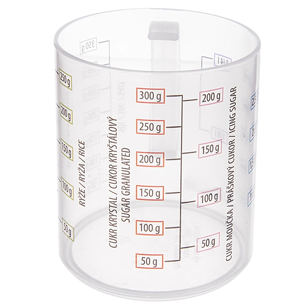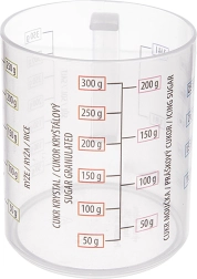 Διευκολύνετε το μαγείρεμα και το ψήσιμο με την compact μεζούρα σε σχήμα κούπας. Χάρη στη πενταπλή κλίμακα μετράτε γρήγορα και με ακρίβεια τον όγκο και το βάρος των πιο συχνών συστατικών. Η μεζούρα είναι από ανθεκτικό και ελαφρύ πλαστικό, ασφαλές για τρόφιμα και ανθεκτικό στη μηχανική φθορά.