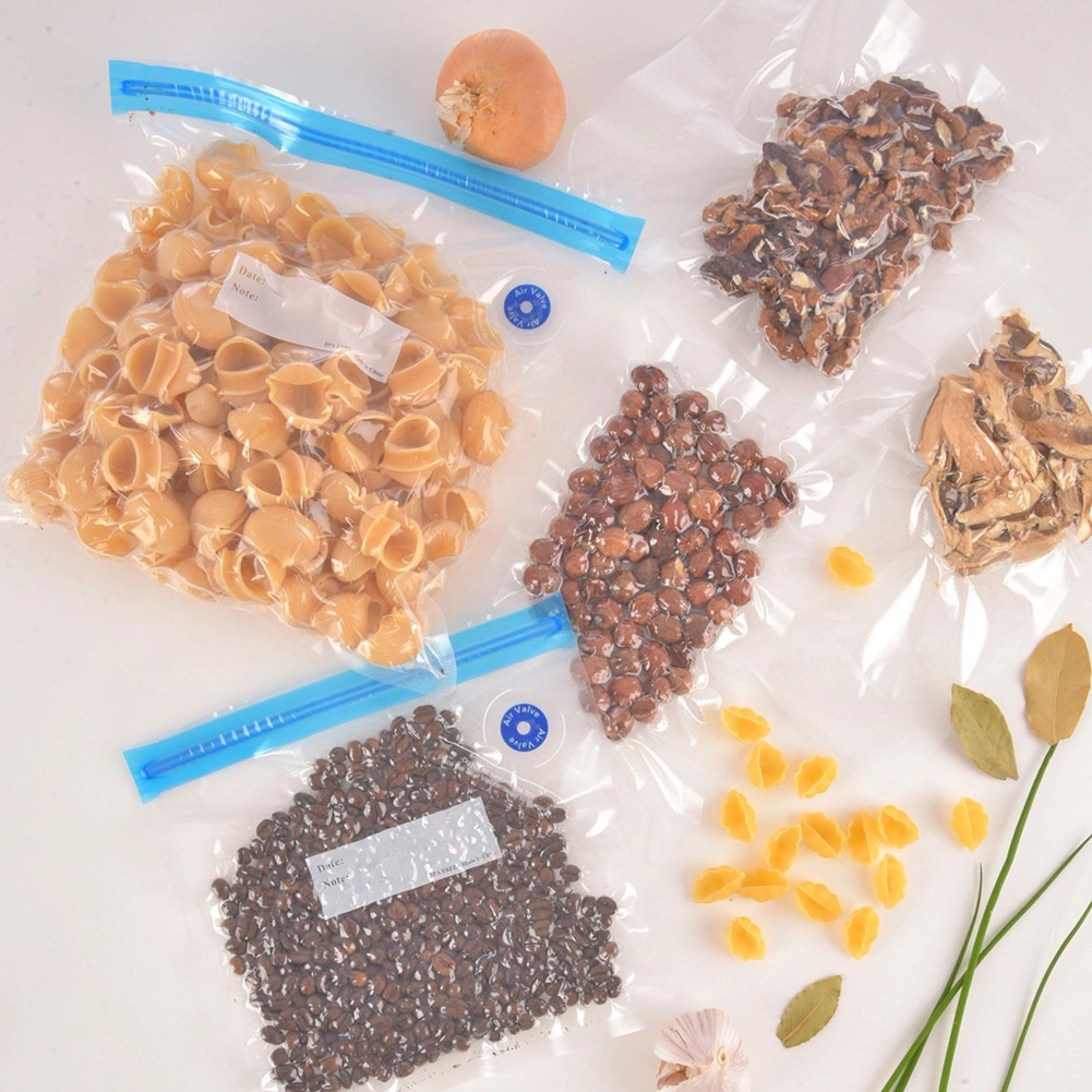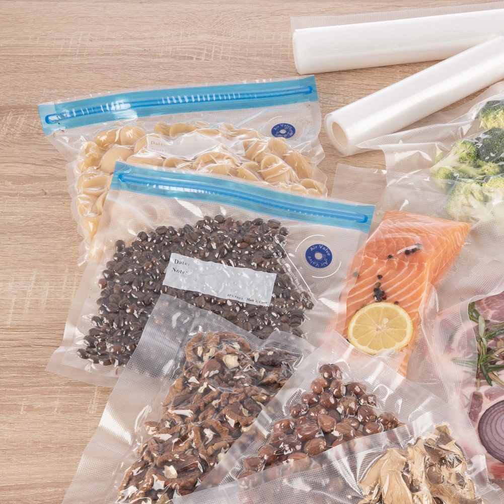 Κρατήστε τα τρόφιμά σας φρέσκα για περισσότερο και τακτοποιημένα. Οι σακούλες κενού με πρακτικό zip και μονόδρομη βαλβίδα επιτρέπουν γρήγορη αφαίρεση αέρα και αξιόπιστο κλείσιμο. Η μία πλευρά είναι λεία, ενώ η άλλη έχει ανάγλυφη υφή για ομοιόμορφη εξαγωγή αέρα.