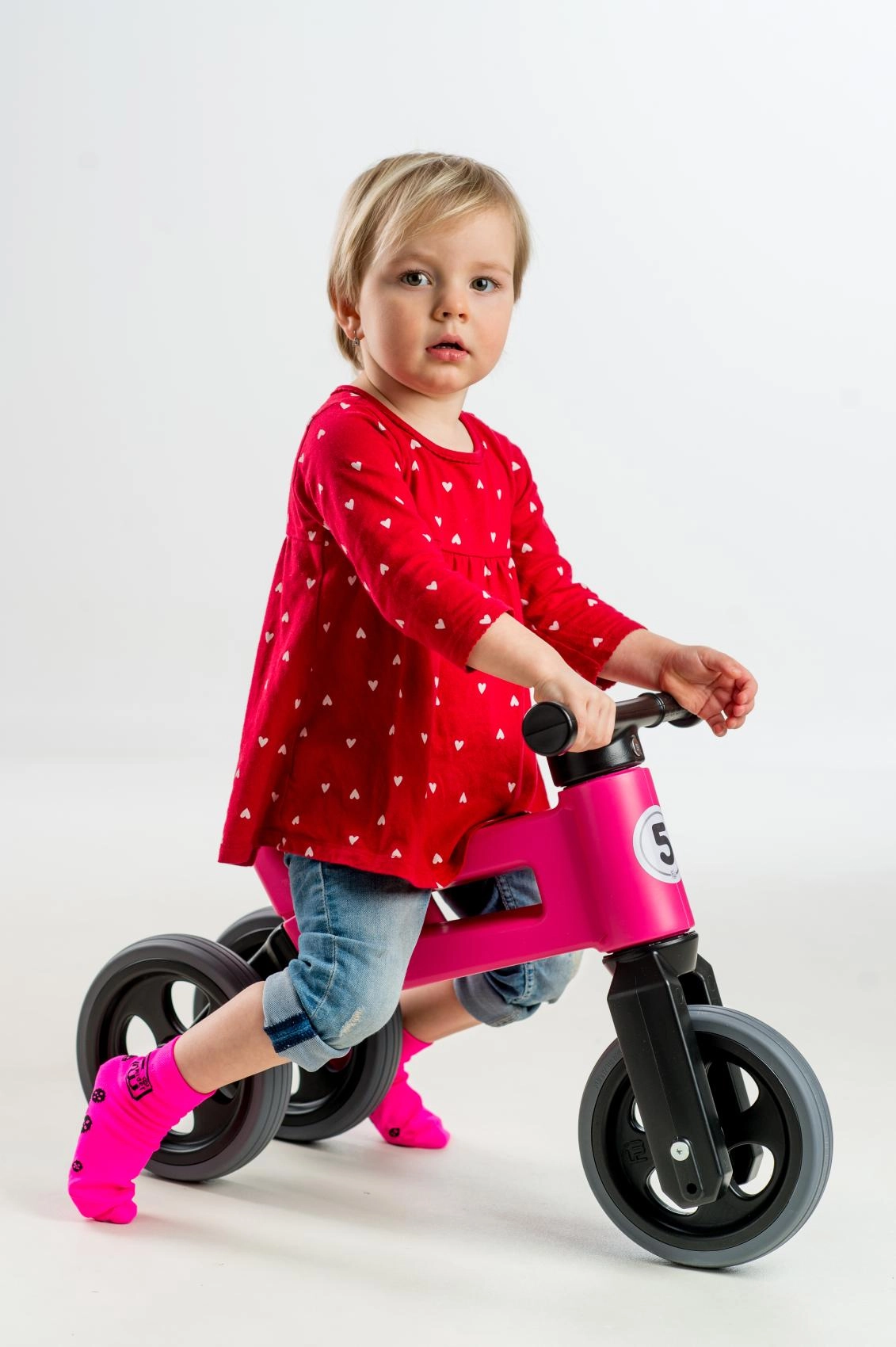Ξεκινήστε με το σταθερό τρίκυκλο και, όταν έρθει η ώρα για εκμάθηση ισορροπίας, απλώς αντικαταστήστε τους δύο πίσω τροχούς με έναν. Ιδανικό για ομαλή μετάβαση στο πρώτο ποδήλατο.