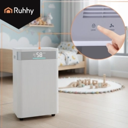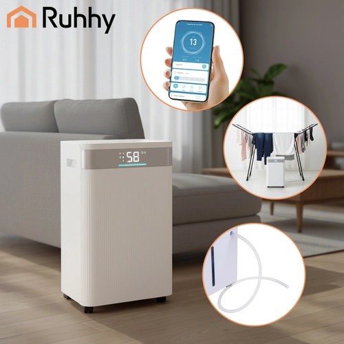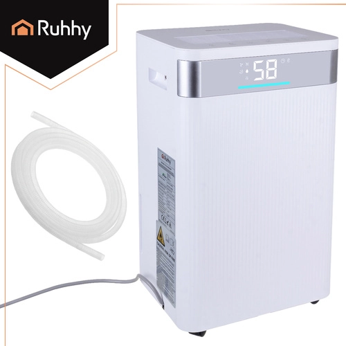 Ισχυρός οικιακός αφυγραντήρας αέρα Brisoo 2000 από τη μάρκα Ruhhy που μειώνει αποτελεσματικά την υγρασία και προστατεύει τοίχους, έπιπλα και ρούχα από μούχλα και τη δυσάρεστη οσμή. Προσφέρει ικανότητα έως 20 l/24 h, μεγάλο δοχείο 4,3 l, αθόρυβη λειτουργία 43 dB, λειτουργία Ρούχα για ταχύτερο στέγνωμα και έλεγχο μέσω Wi‑Fi και της εφαρμογής Smart Life για μέγιστη άνεση.