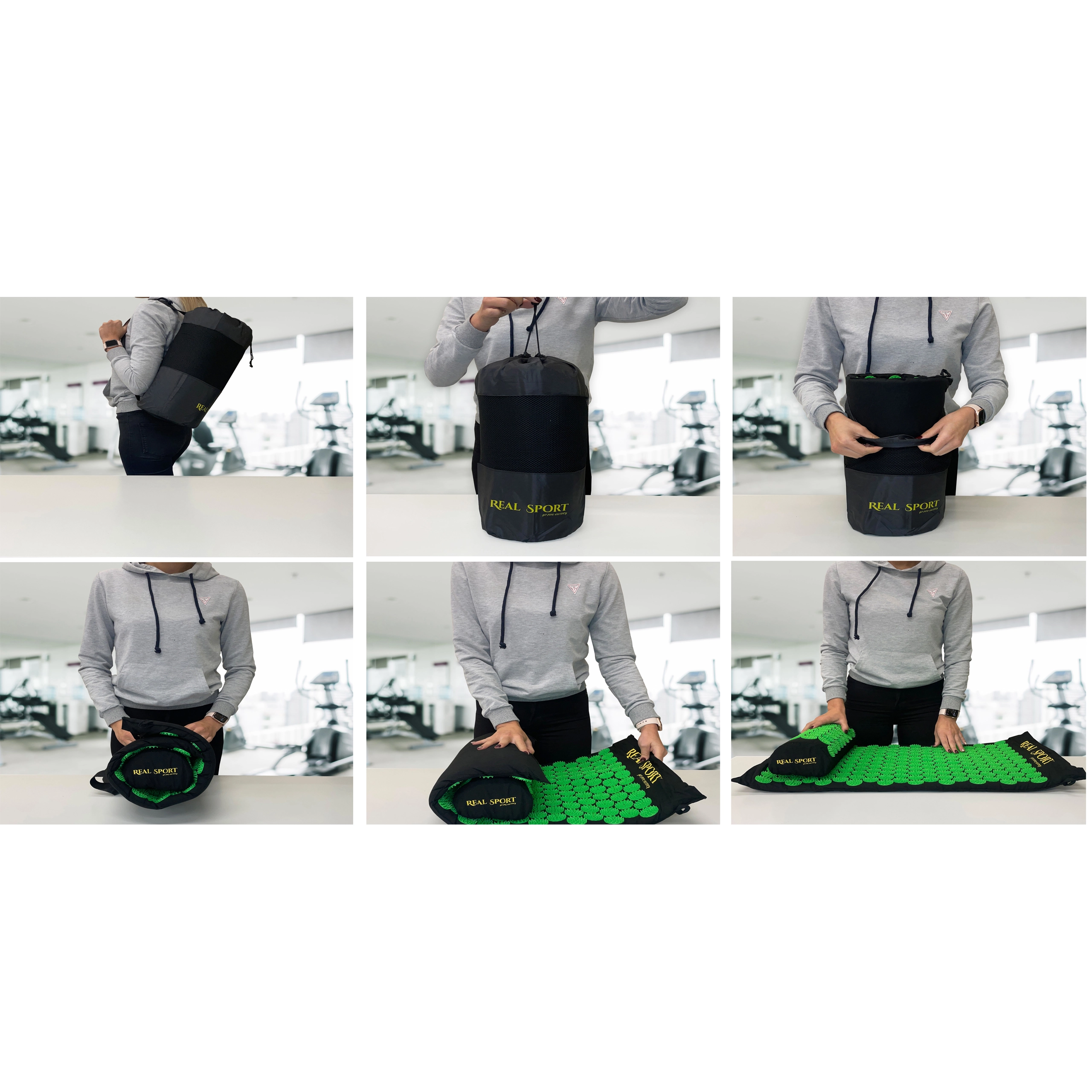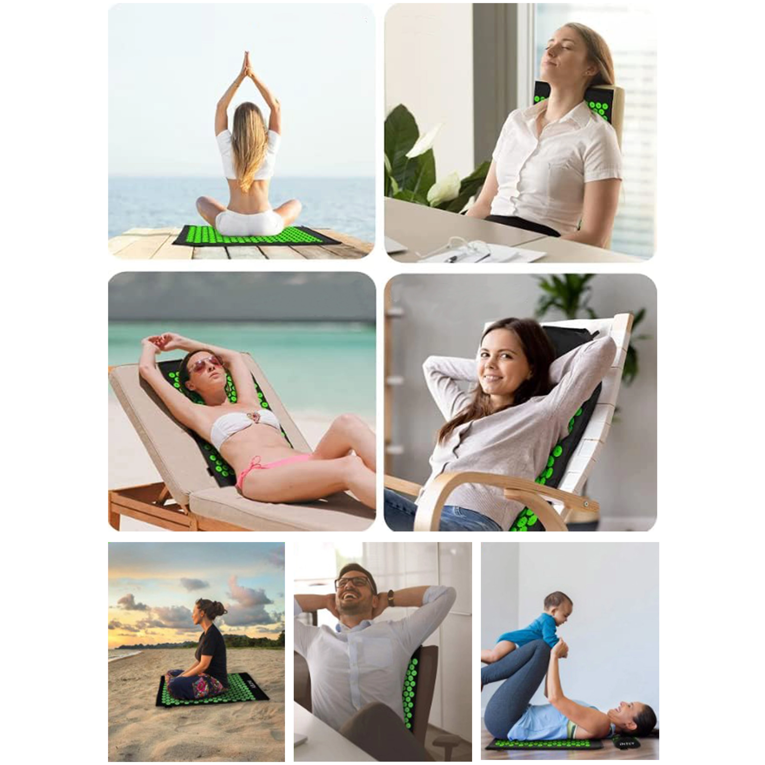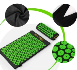 Το σετ ακουστικής πίεσης (στρώμα + μαξιλαράκι) μιμείται το αποτέλεσμα της παραδοσιακής ακουστικής πίεσης και βοηθά στη μείωση της έντασης στην πλάτη, τον αυχένα και τους ώμους. Δεκάδες πράσινοι δίσκοι με ακίδες στοχεύουν σημεία πίεσης, προάγοντας τη μυϊκή αποκατάσταση και τη φυσική αιμάτωση. Χάρη στην ελαφριά κατασκευή και τη θήκη, το παίρνετε εύκολα στο σπίτι, στο γραφείο και στα ταξίδια.
